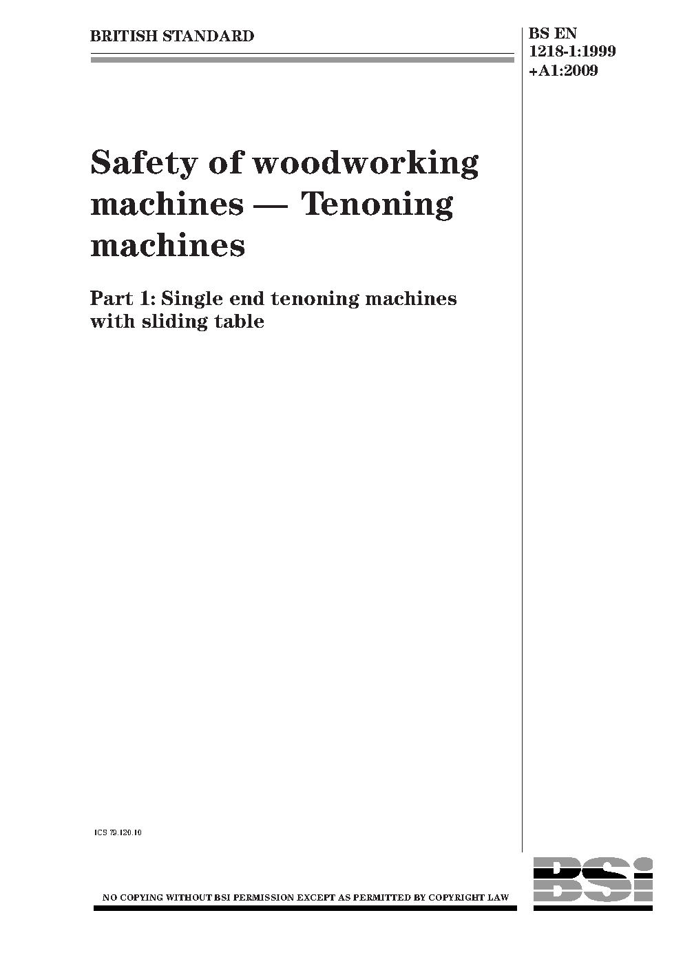 Safety of woodworking machines. Tenoning machines Single end tenoning with sliding table