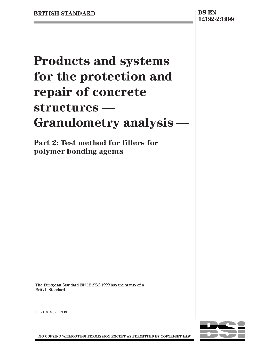 Products and systems for the protection repair of concrete structures. Granulometry analysis Test method fillers polymer bonding agents