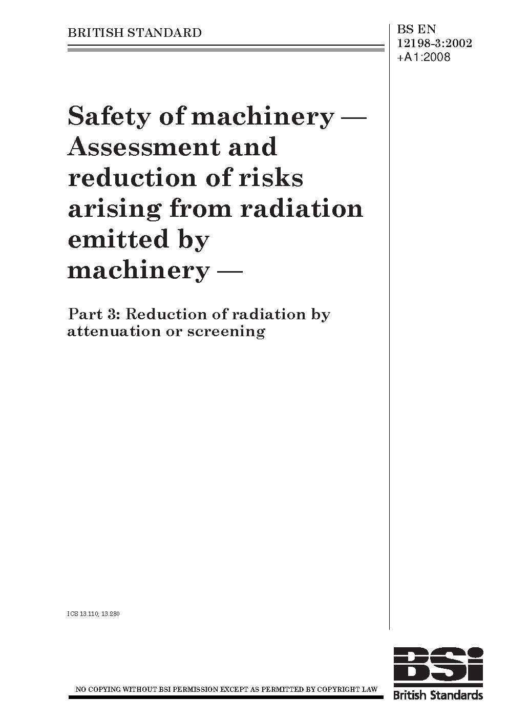 Safety of machinery. Assessment and reduction risks arising from radiation emitted by machinery Reduction attenuation or screening