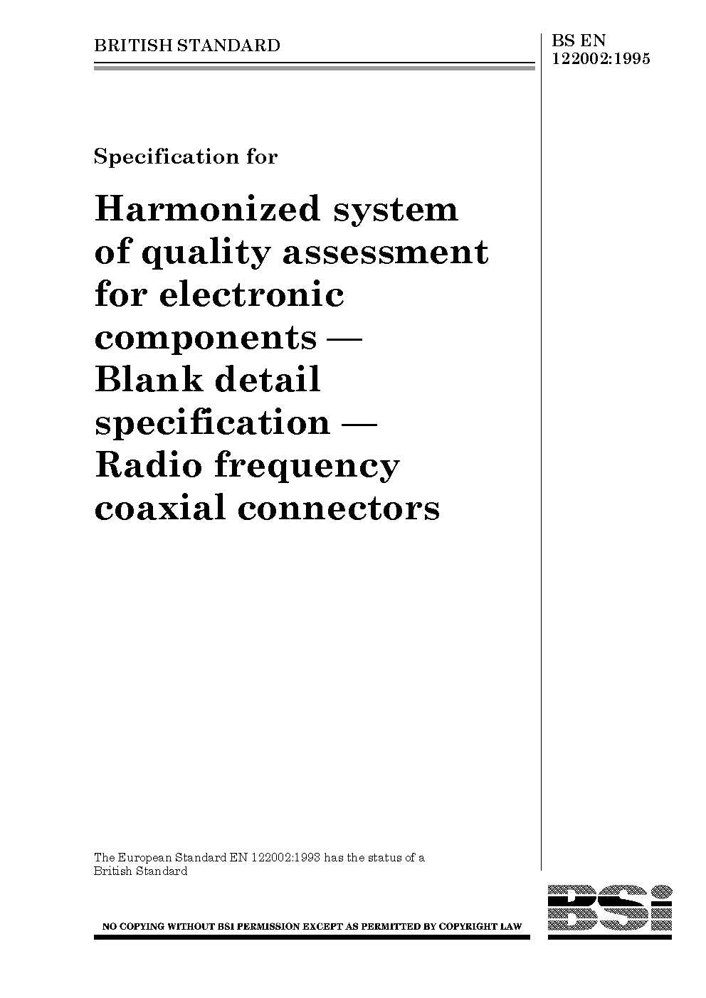 Quality assurance systems;Electronic equipment and components;Radiofrequencies;Electrical components;Electric connectors;Electric plugs;Quality assurance;Specification (approval);Detail specification;Coaxial connectors