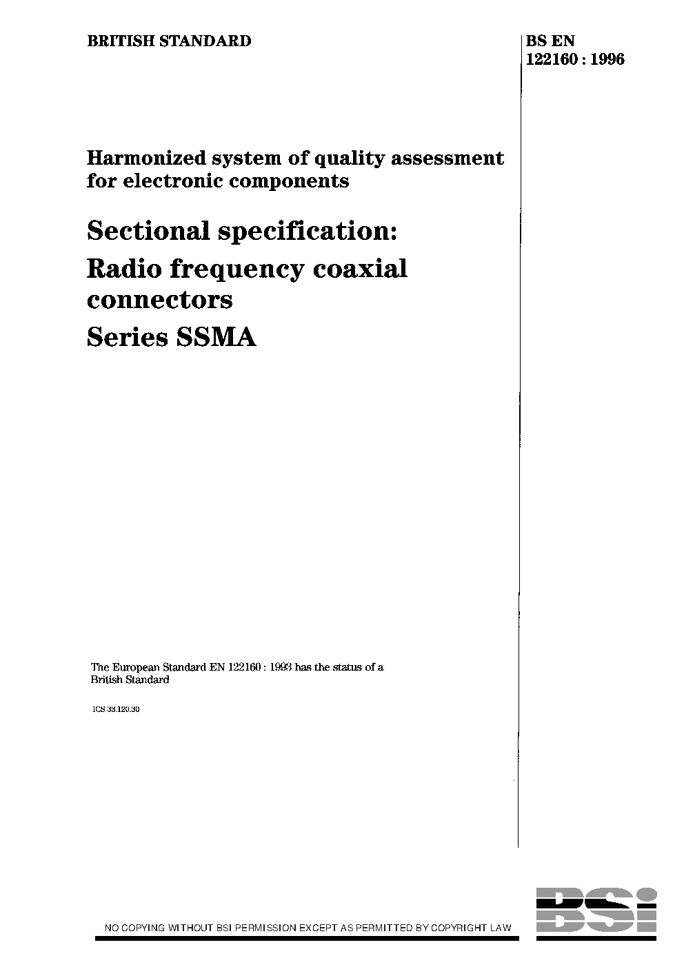 Harmonized system of quality assessment for electronic components. Sectional specification: radio frequency coaxial connectors. Series SSMA