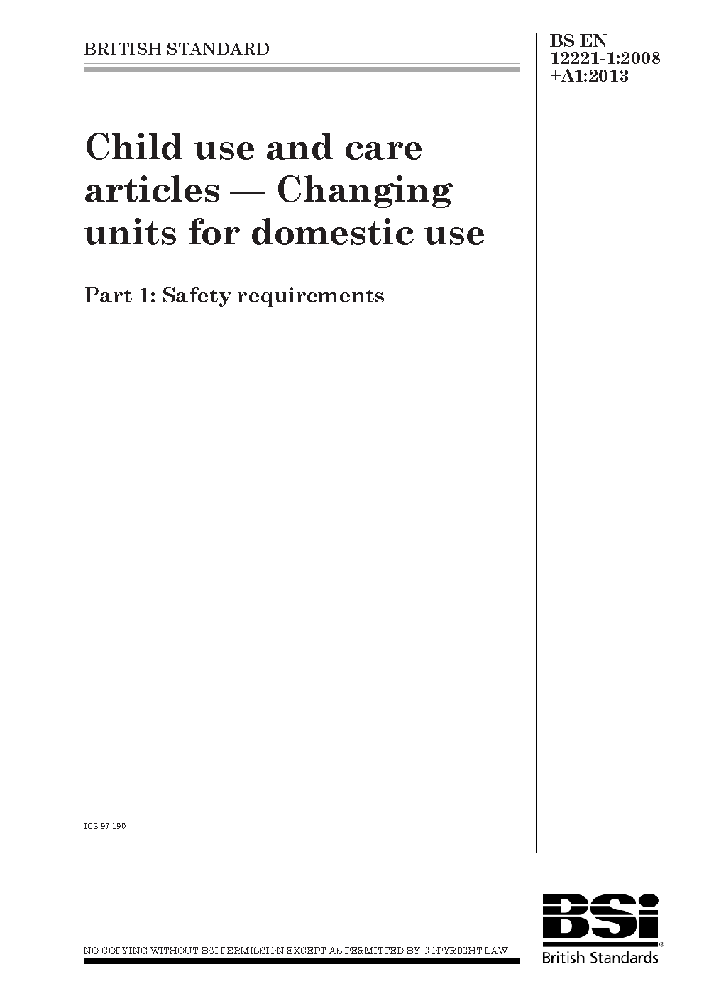 Child care articles. Changing units and changing pads for domestic use. Safety requirements and test methods