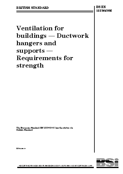 Ventilation for buildings. Ductwork hangers and supports. Requirements for strength