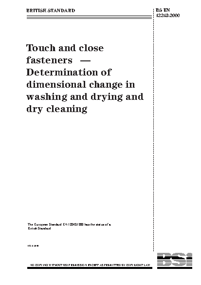 Touch and close fasteners. Determination of dimensional change in washing and drying and dry cleaning