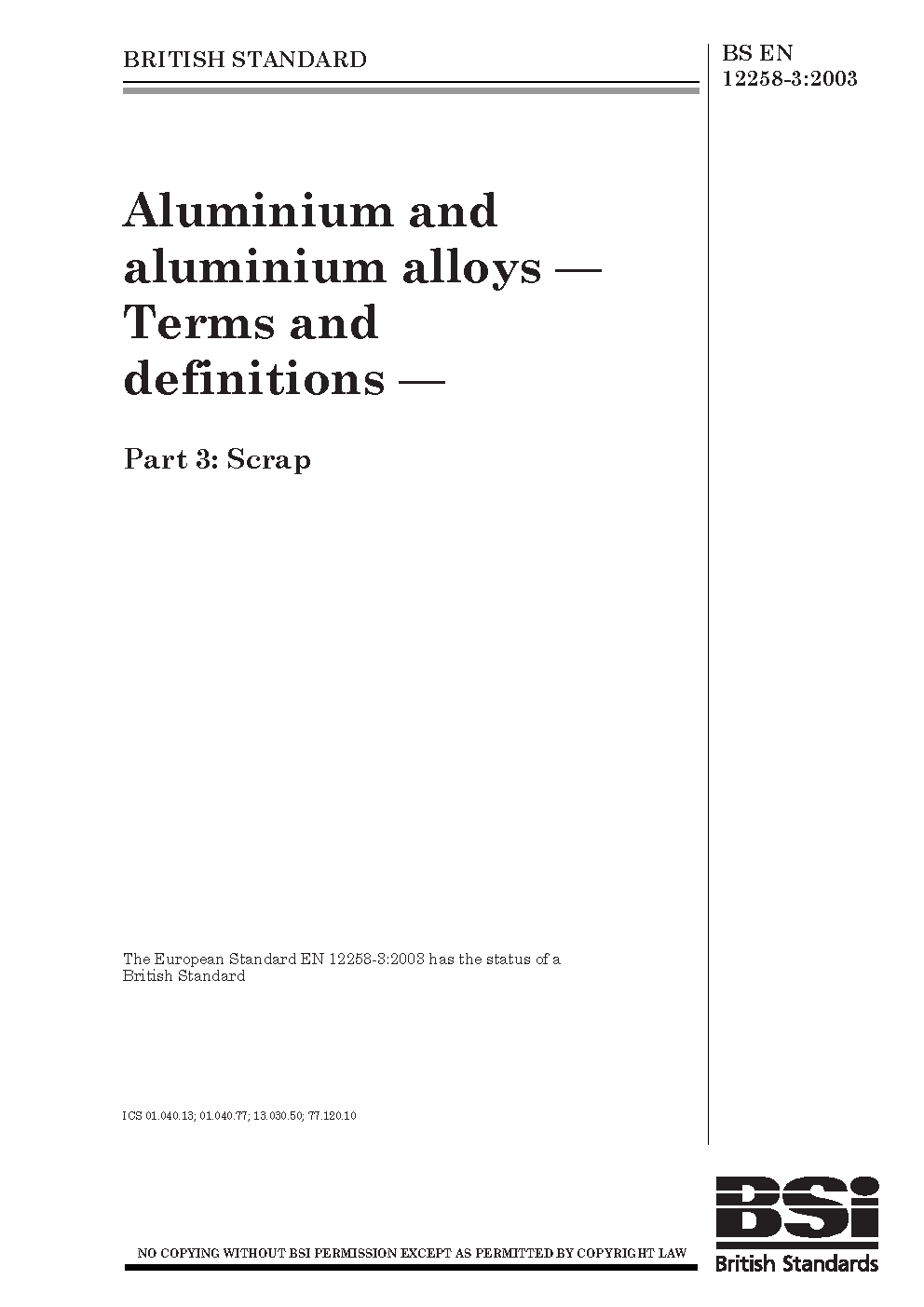 Aluminium and aluminium alloys. Terms definitions Scrap