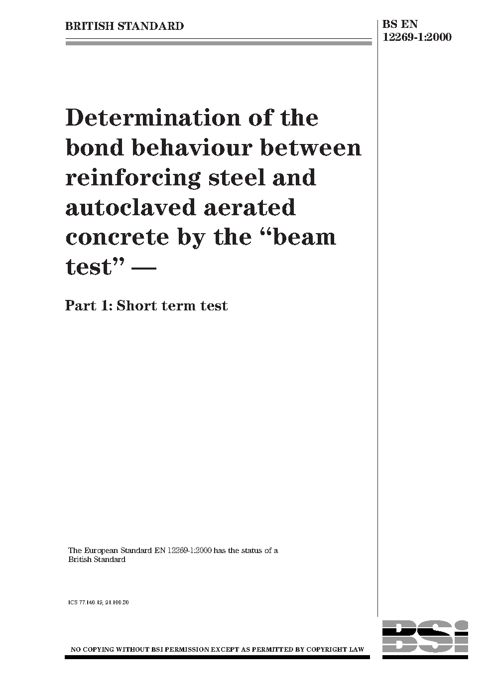 Determination of the bond behaviour between reinforcing steel and autoclaved aerated concrete by "beam test" Short term test