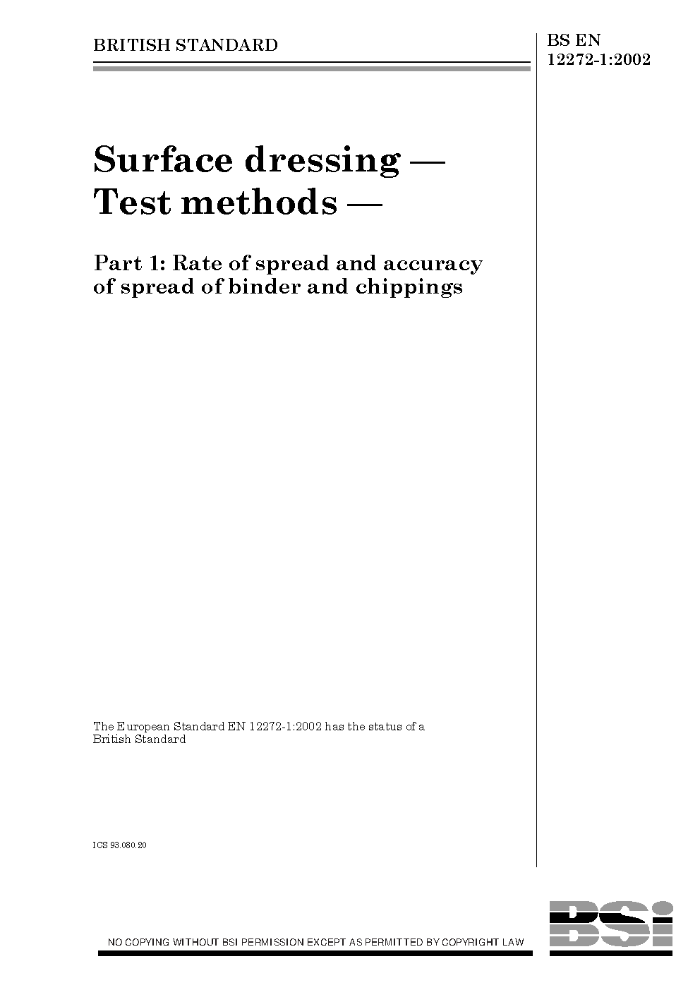 Surface dressing. Test methods Rate of spread and accuracy binder chippings