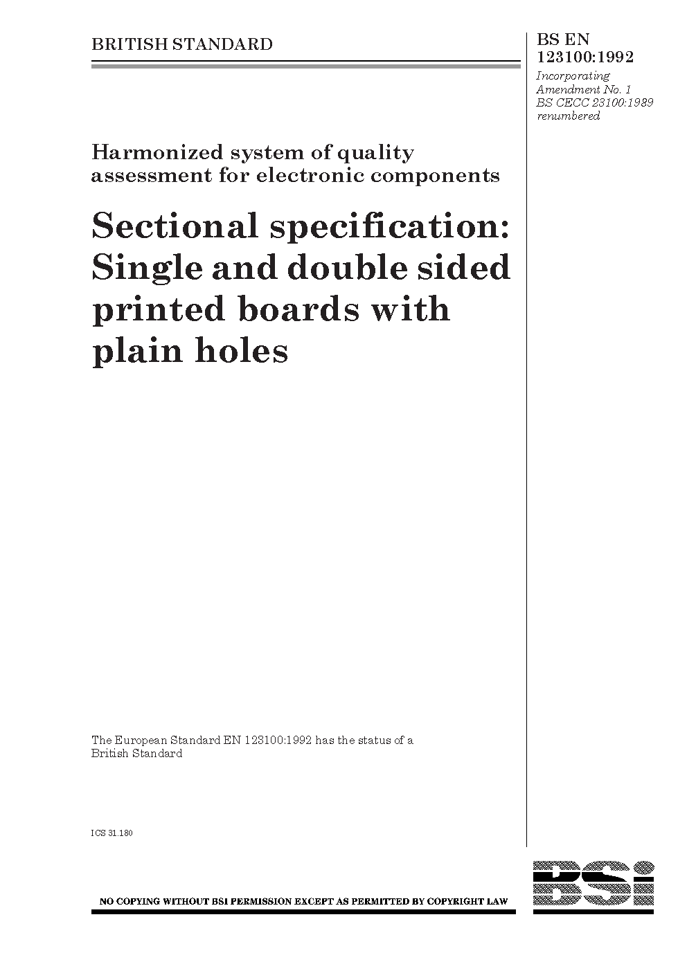 Harmonized system of quality assessment for electronic components: Sectional specification: Single and double sided printed boards with plain holes