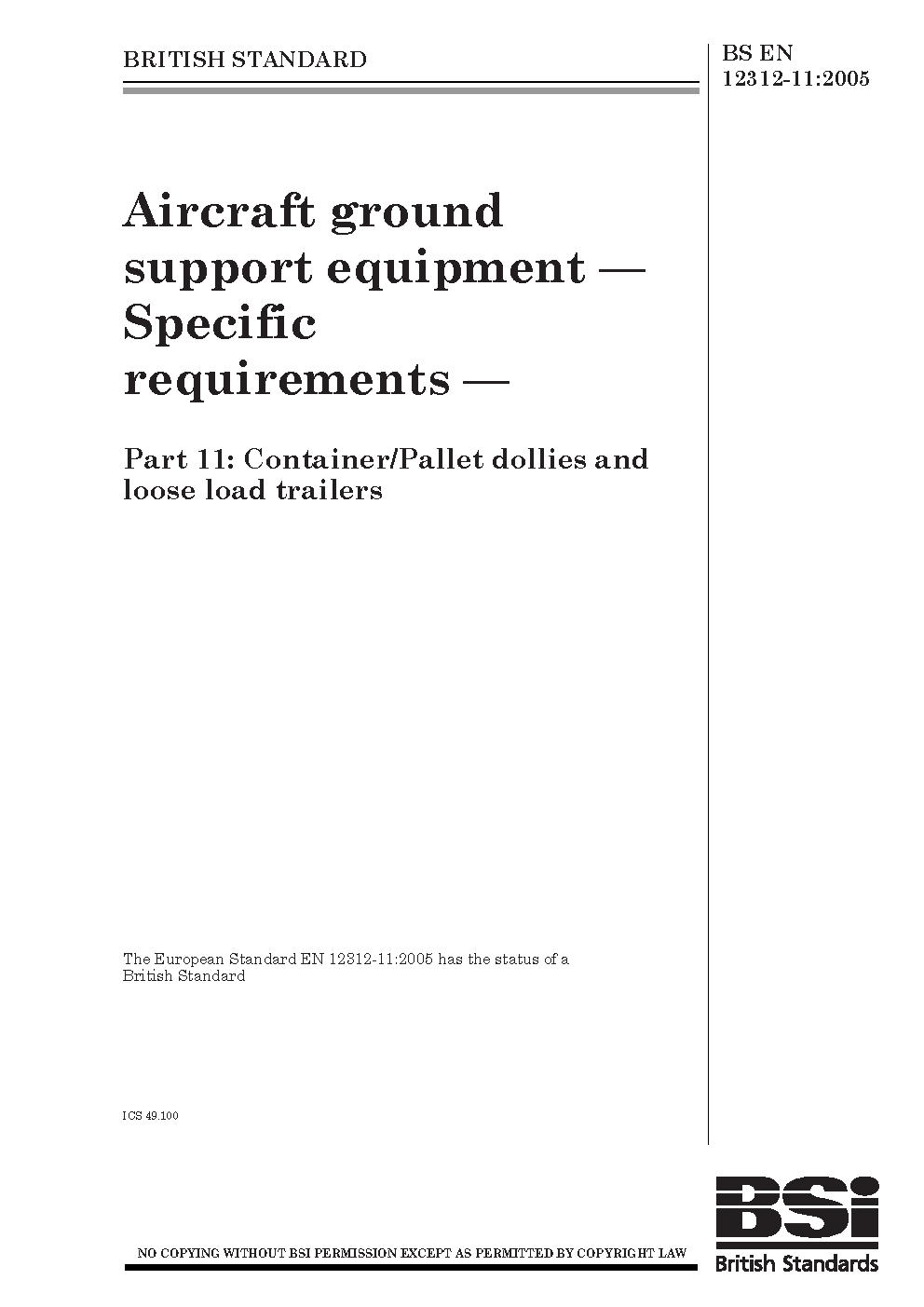 Aircraft ground support equipment. Specific requirements Container/pallet dollies and loose load trailers