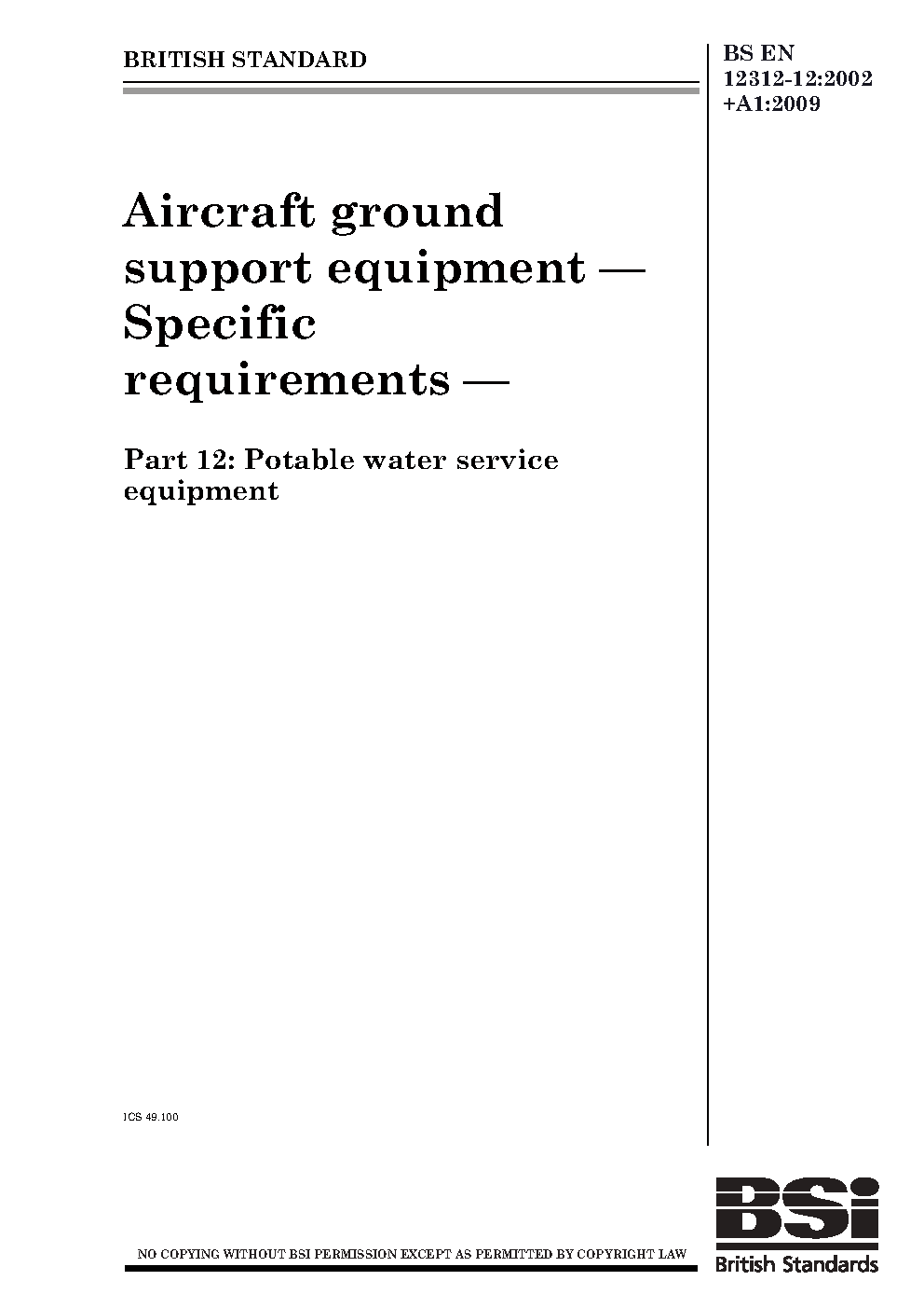 Aircraft ground support equipment. Specific requirements Potable water service equipment