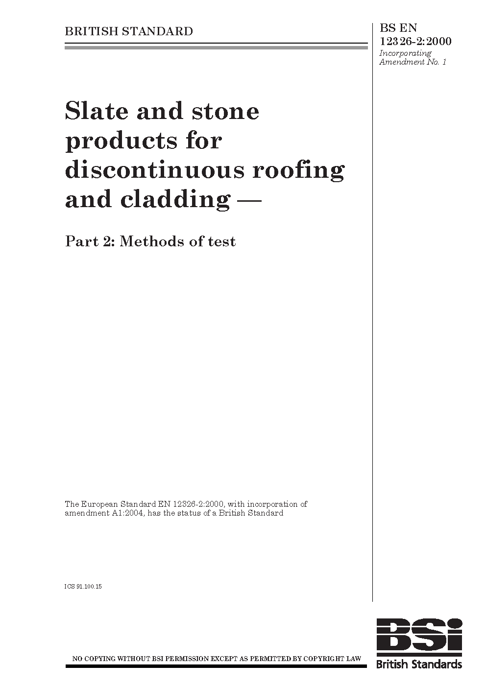 Slate and stone products for discontinuous roofing cladding Methods of test