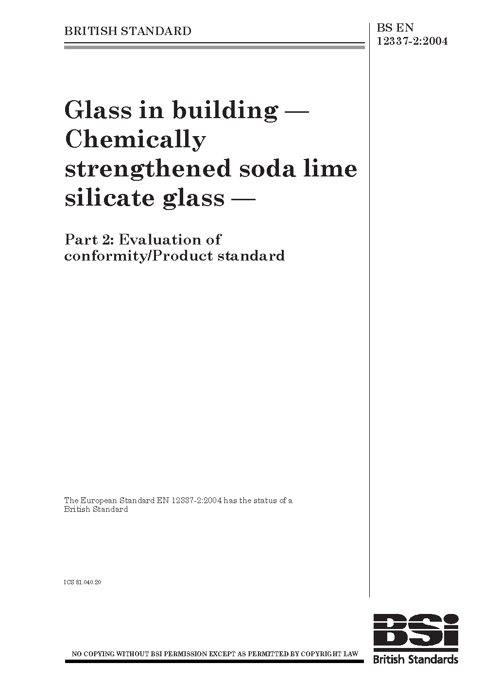 Glass in building. Chemically strengthed soda lime silicate glass Evaluation of conformity/Product standard