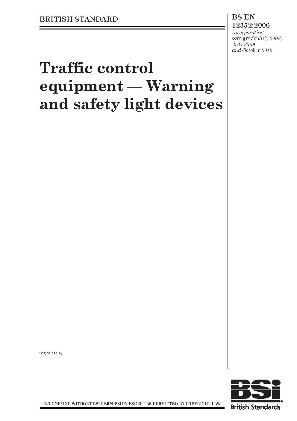 Traffic control equipment. Warning and safety light devices