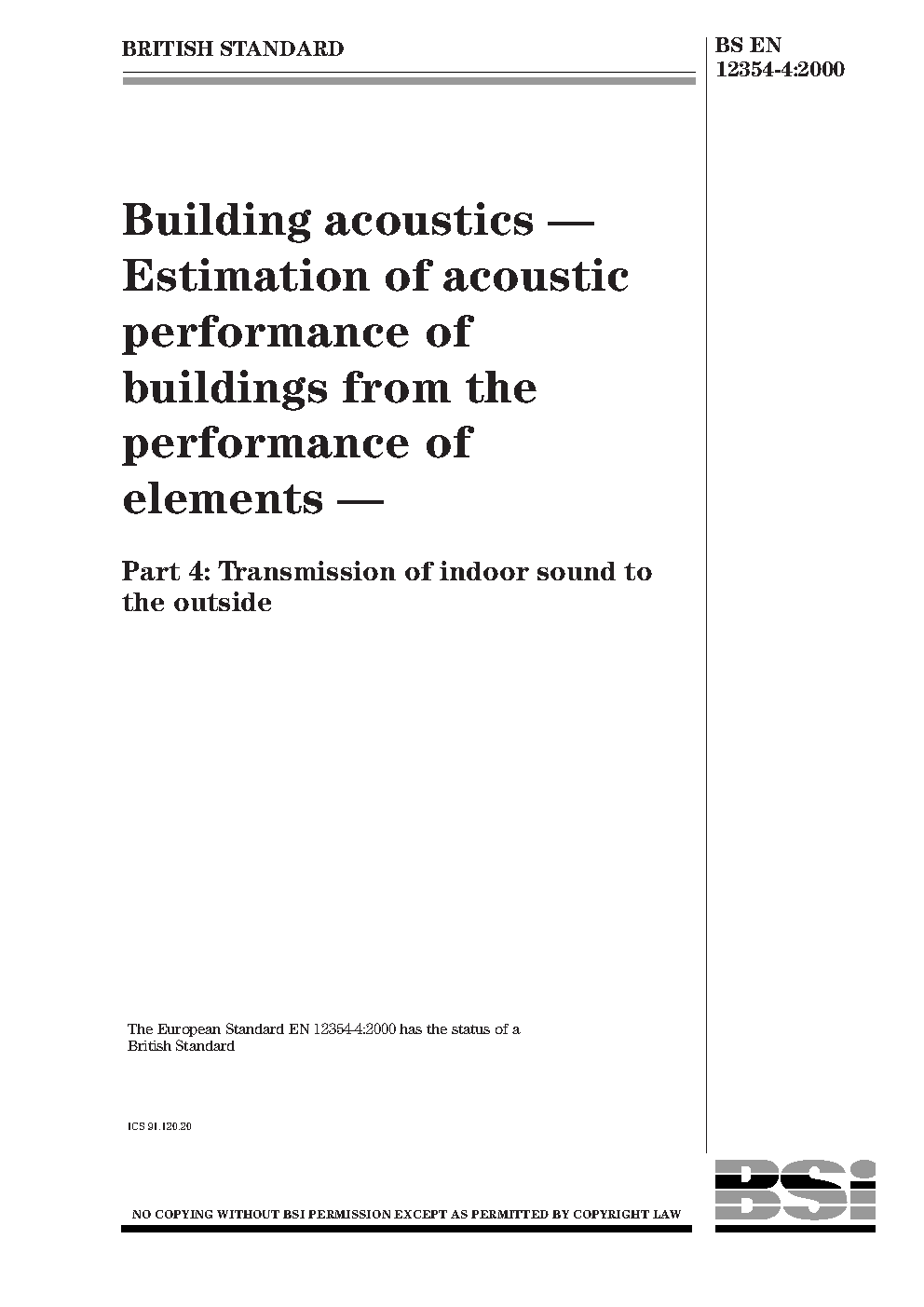 Building acoustics. Estimation of acoustic performance in buildings from the elements Transmission indoor sound to outside