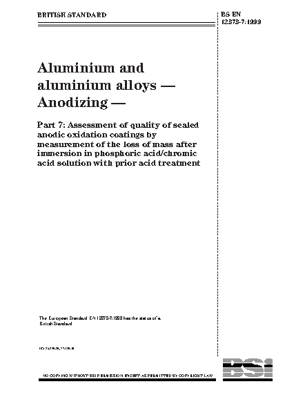 Aluminium and aluminium alloys. Anodizing Assessment of quality sealed anodic oxidation coatings by measurement the loss mass after immersion in phosphoric acid/chromic acid solution with prior treatment