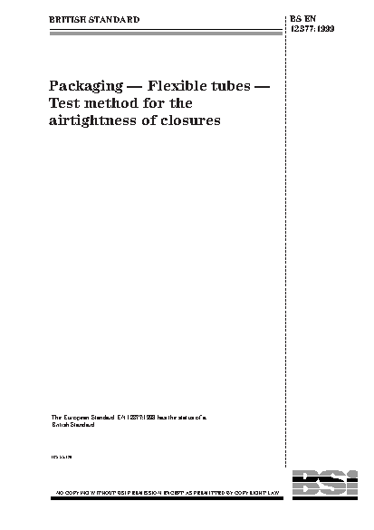 Packaging. Flexible tubes. Test method for the air tightness of closures