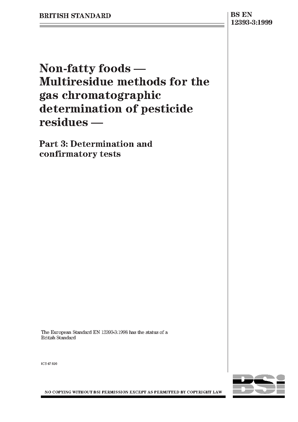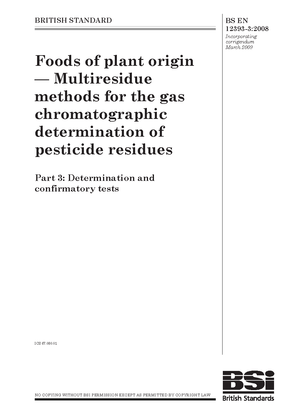 Foods of plant origin. Multiresidue methods for the determination pesticide residues by GC or LC-MS/MS Determination and confirmatory tests