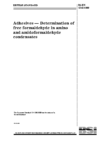 Adhesives. Determination of free formaldehyde in amino and amidoformaldehyde condensates