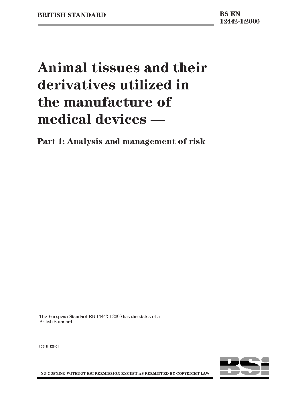 Animal tissues and their derivatives utilized in the manufacture of medical devices Analysis management risk