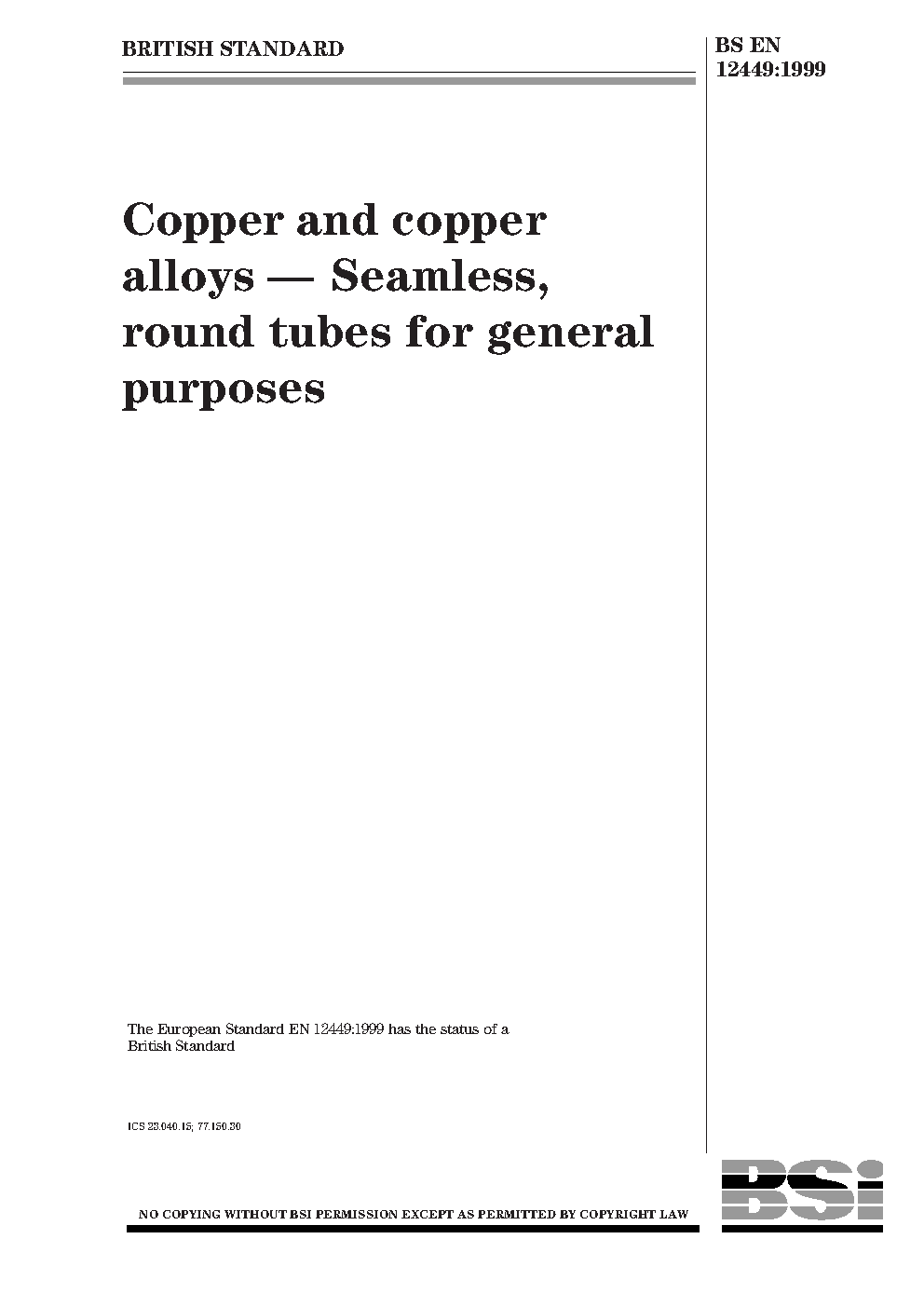 Copper and copper alloys. Seamless, round tubes for general purposes
