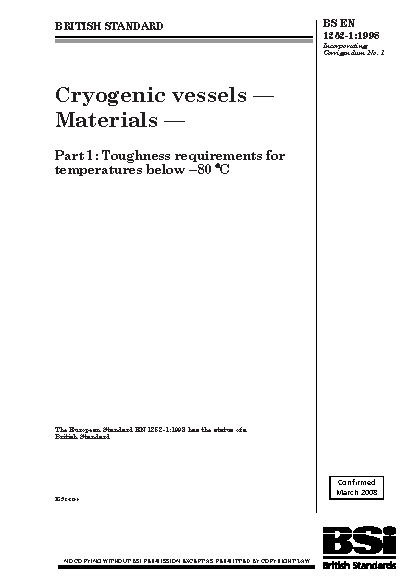 Cryogenic vessels. Materials Toughness requirements for temperatures below -80°C