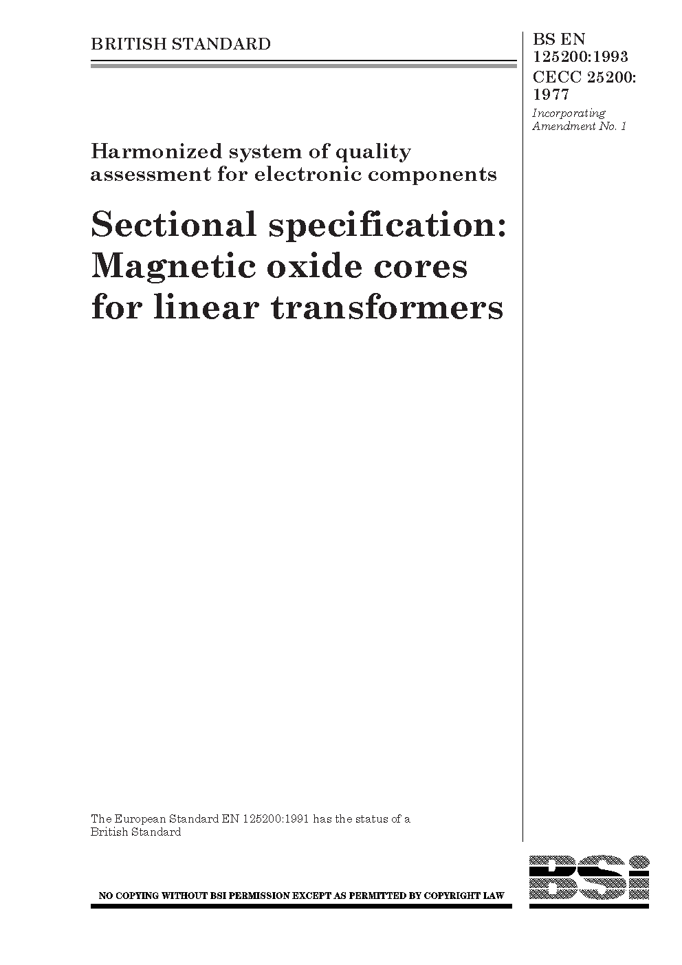 Harmonized system of quality assessment for electronic components: sectional specification: magnetic oxide cores for linear transformers