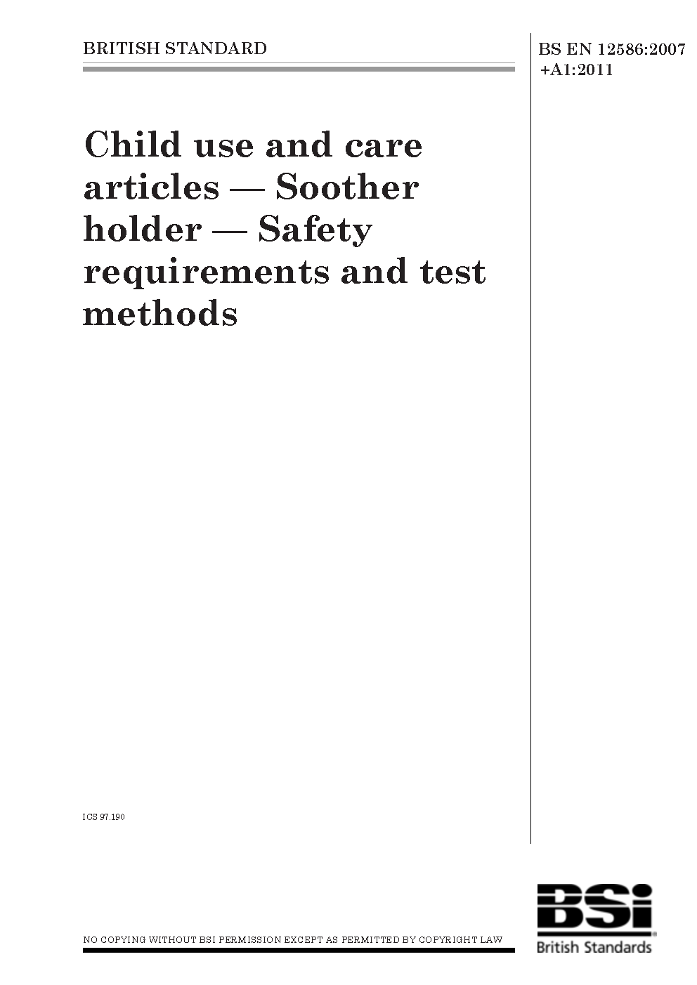 Child use and care articles. Soother holder. Safety requirements and test methods
