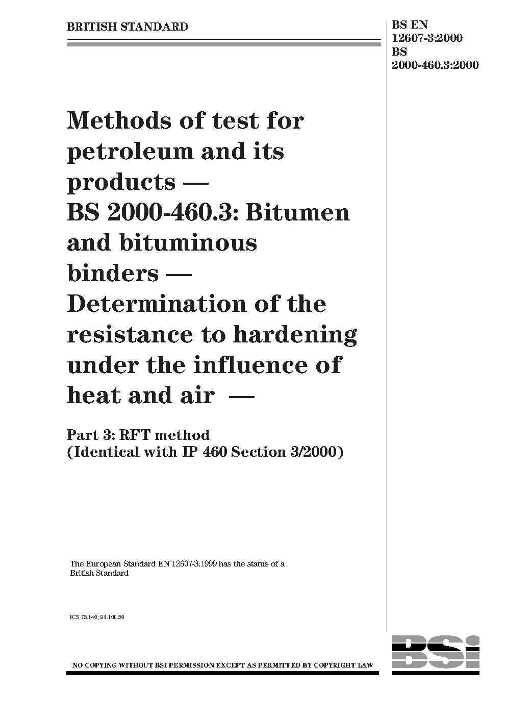 Bitumen and bituminous binders. Determination of the resistance to hardening under influence heat air RFT method