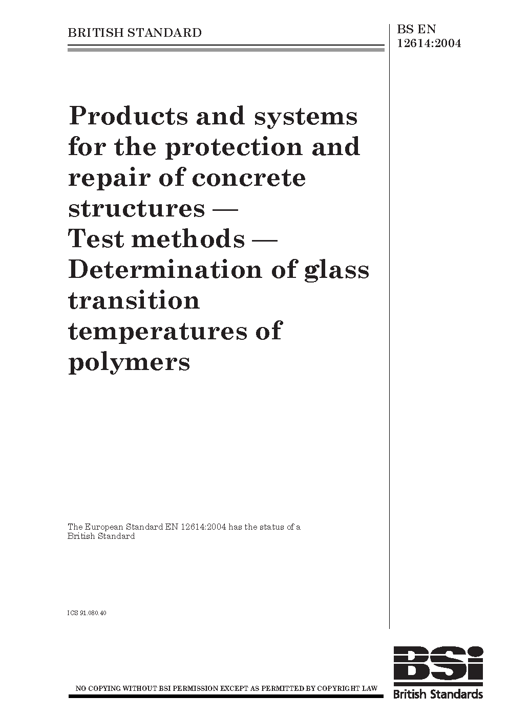 Products and systems for the protection and repair of concrete structures. Test methods. Determination of glass transition temperatures of polymers