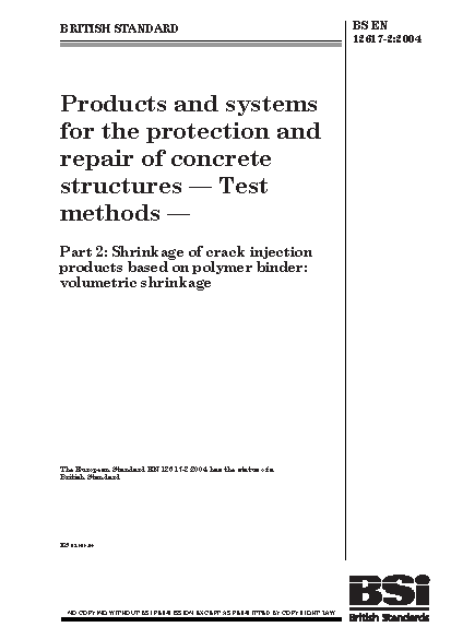 Products and systems for the protection repair of concrete structures. Test methods Shrinkage crack injection products based on polymer binder: volumetric shrinkage
