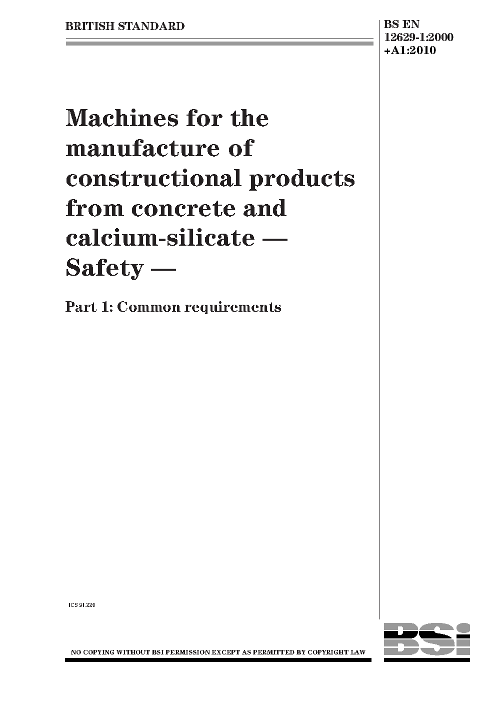 Machines for the manufacture of constructional products from concrete and calcium-silicate. Safety Common requirements