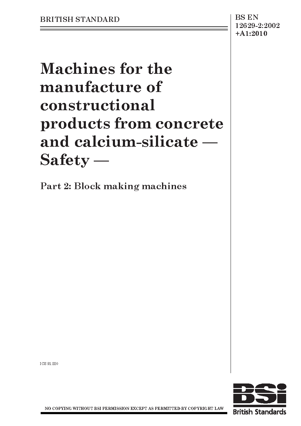 BS EN 12629-2:2002+A1:2010