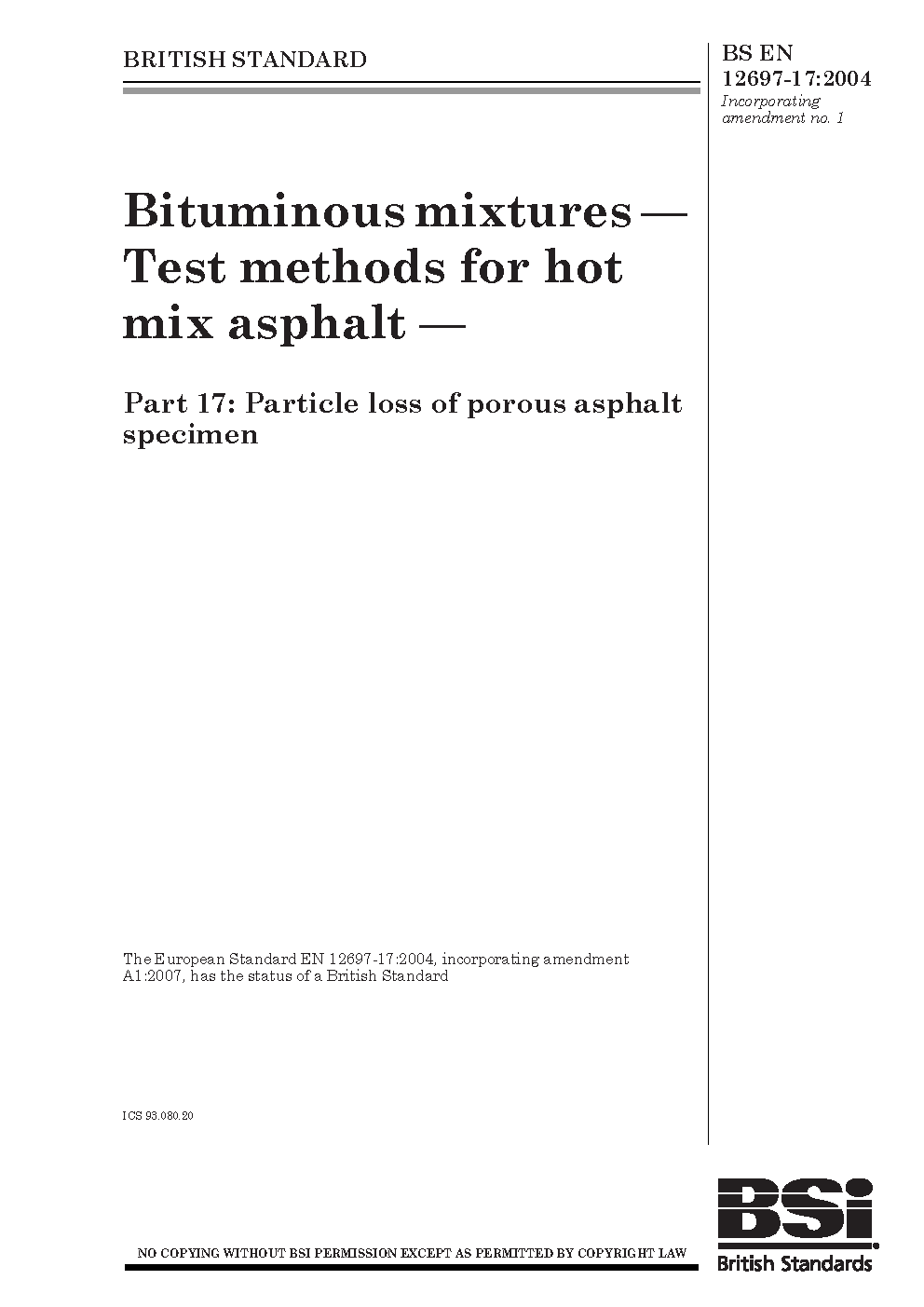 Bituminous mixtures. Test methods for hot mix asphalt Particle loss of porous specimen