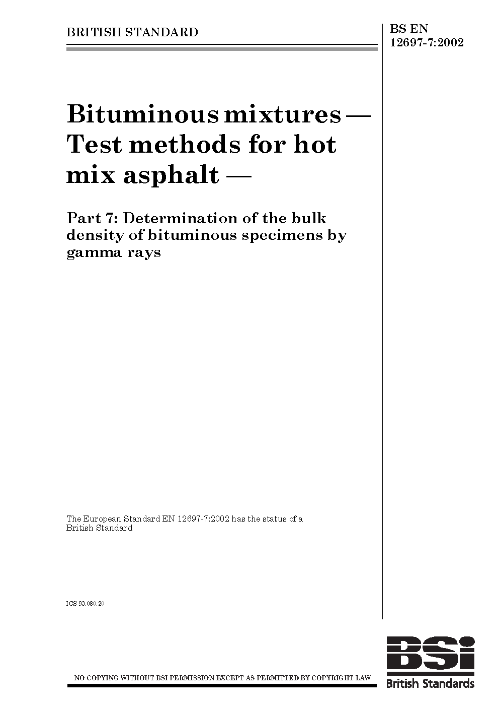 Bituminous mixtures. Test methods for hot mix asphalt Determination of the bulk density bituminous specimens by gamma rays