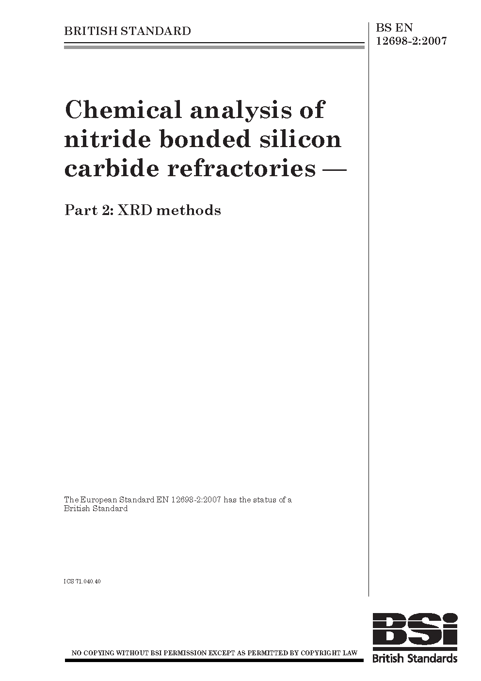 Test specimens;Refractory materials;Bonding;Diffractometry;Nitrides;Silicon inorganic compounds;Refractories;Chemical analysis and testing;Carbides