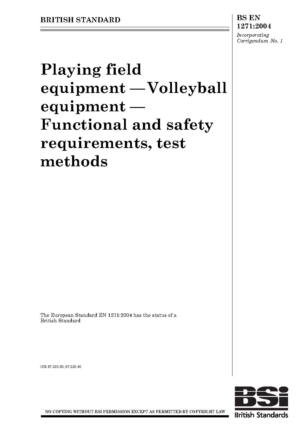Playing field equipment. Volleyball equipment. Functional and safety requirements, test methods
