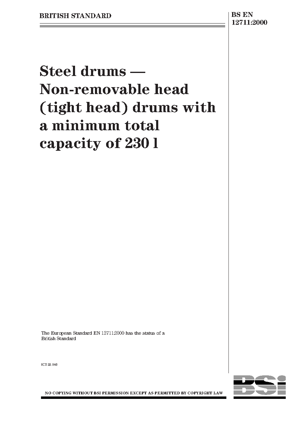 Steel drums. Non-removable head (tight head) drums with a minimum total capacity of 230 l