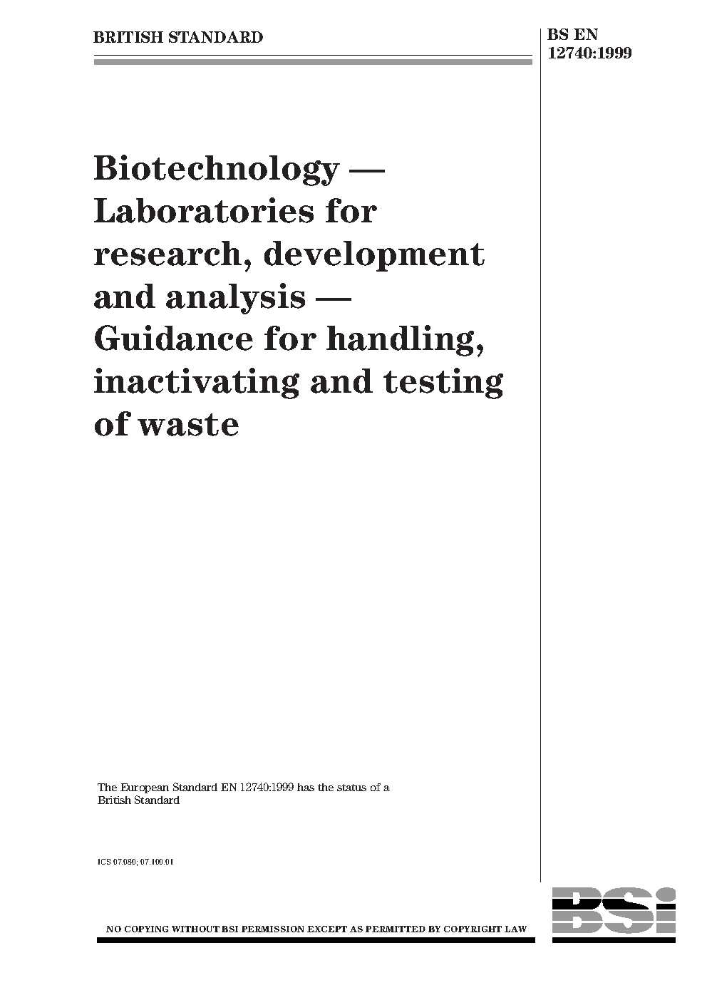 Biotechnology. Laboratories for research, development and analysis. Guidance for handling, inactivating and testing of waste