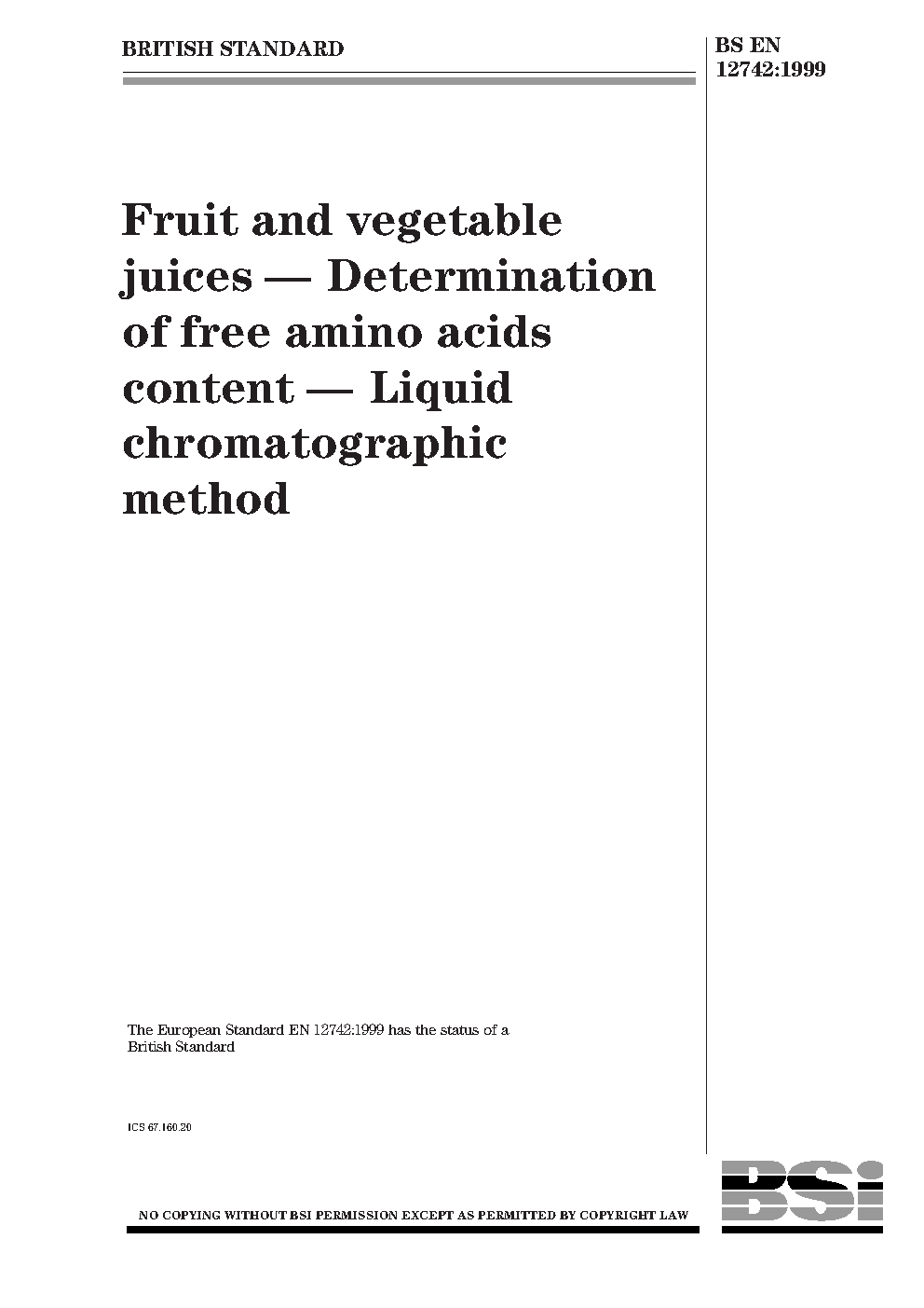 Fruit and vegetable juices. Determination of free amino acids content. Liquid chromatographic method