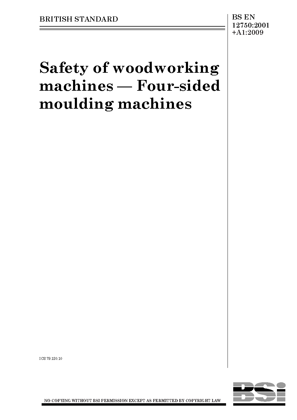 Safety of woodworking machines. Four sided moulding machines