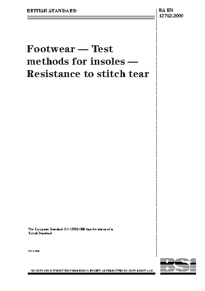 Footwear. Test methods for insoles. Resistance to stitch tear