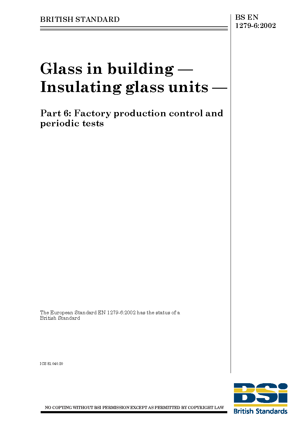 BS EN 1279-6:2002