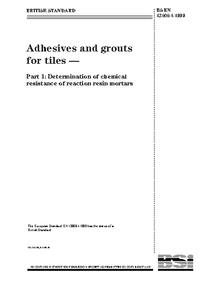 Mortars;Chemical-resistance tests;Compressive strength;Ceramics;Flooring tiles;Tiles;Adhesives;Wall tiles;Testing conditions;Test specimens;Grouting;Test equipment;Specimen preparation
