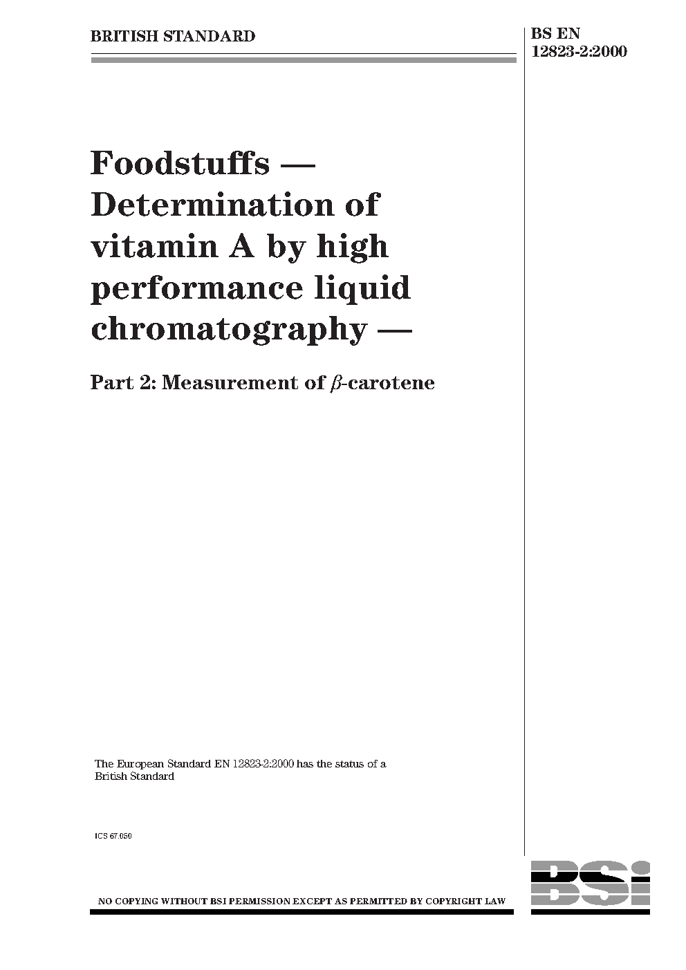 Foodstuffs. Determination of vitamin A by high performance liquid chromatography Measurement ß-carotene