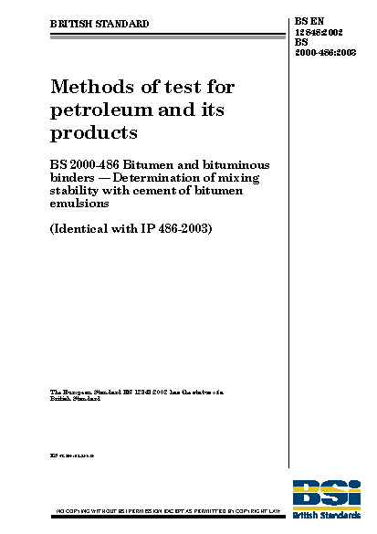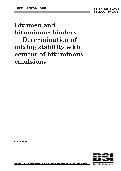 Methods of test for petroleum and its products. Bitumen and bituminous binders. Determination of mixing stability with cement of bitumen emulsions