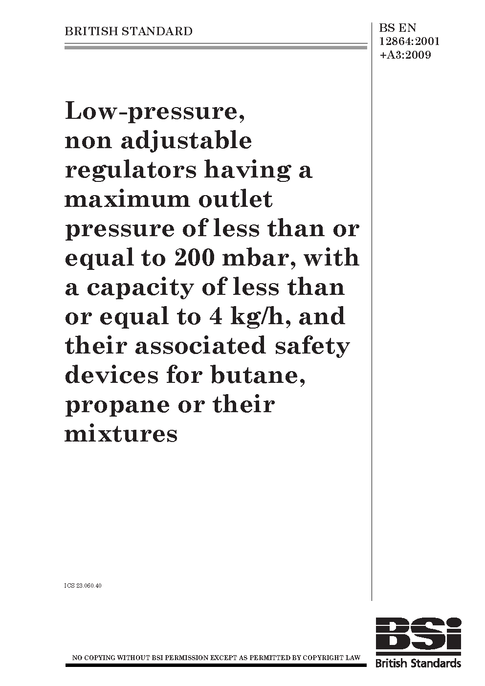 Low-pressure, non adjustable regulators having a maximum outlet pressure of less than or equal to 200 mbar, with a capacity of less than or equal to 4 kg/h, and their associated safety devices for butane, propane or their mixtures