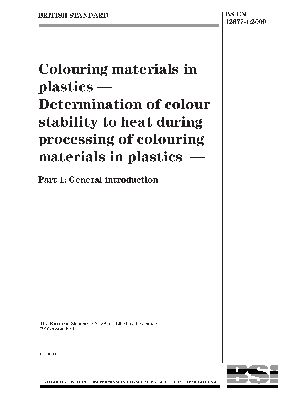 Colouring materials in plastics. Determination of colour stability to heat during processing colouring plastics General introduction