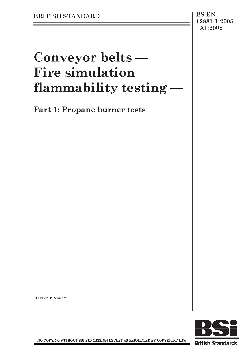 Conveyor belts. Fire simulation flammability testing Propane burner tests