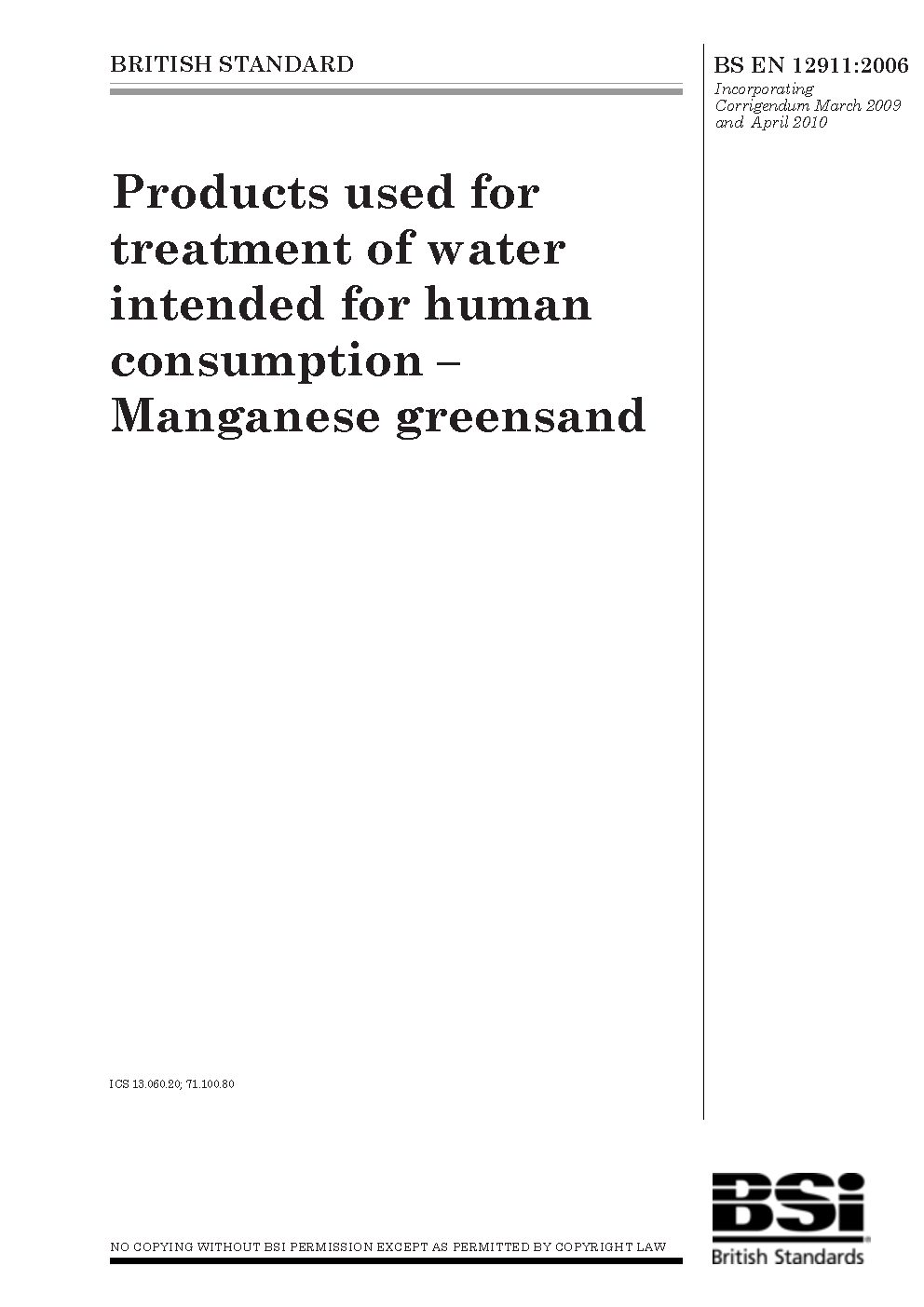 Products used for treatment of water intended for human consumption. Manganese greensand