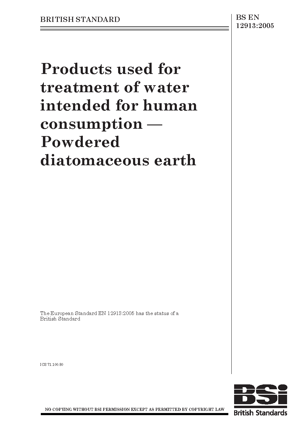 Density;Purity;Physical properties of materials;Permeability;Chemical composition;Water treatment;Storage;Particle size distribution;Potable water;Water;Chemical properties;First aid;Marking;Diatomite;Particulate materials;Emergency measures